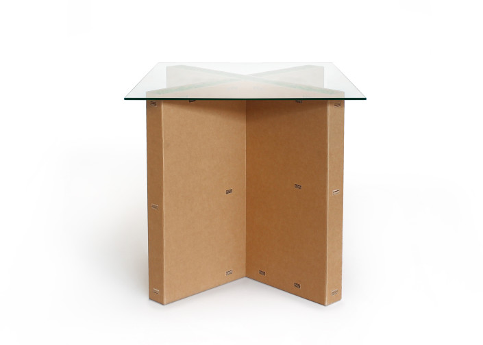 Otro 80 è un tavolino quadrato in cartone e vetro dal design contemporaneo, progettato per accogliere comodamente fino a quattro persone. La sua struttura portante realizzata con un incastro a croce dei pannelli in cartone conferisce una stabilità robusta, garantendo solidità e sicurezza, mentre il design aperto lascia spazio sufficiente per le sedute circostanti. Questo tavolino è una combinazione armoniosa di forma ed funzionalità.