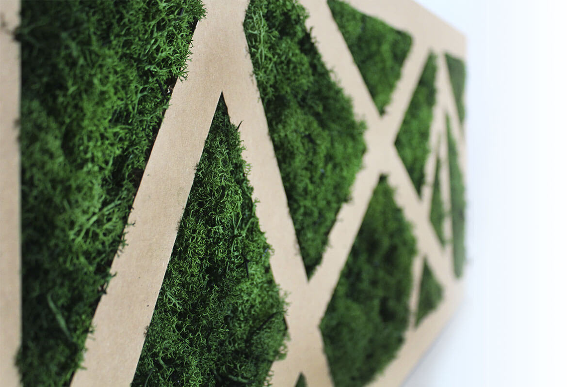 Rames 40 è un quadro a muro decorativo a parete con la particolarità di avere una struttura reticolata interna in cartone  riempita con licheni naturali. Il Pannello è personalizzabile nei colori e nelle grafiche ed è un complemento di arredo funzionale adattabile ad ogni ambiente.