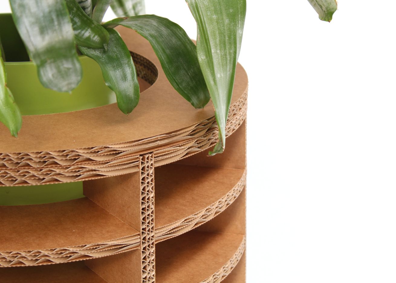 Il particolare sostenibile di Tessa2 è il materiale con cui è costruita: il cartone di tipo navale, un sandwich composto da due fogli di cartone liscio e uno o più fogli di cartone ondulato tenuti insieme da collanti naturali derivati da amidi di mais o fecola. Questo rende la fioriera incredibilmente resistente all’umidità, garantendo una lunga durata e un’eccellente stabilità, anche quando viene accidentalmente bagnata durante l’annaffiatura delle piante. Questa caratteristica la rende perfetta per l’utilizzo in ambienti interni o esterni, senza preoccuparsi degli effetti dell’umidità sulla sua struttura.