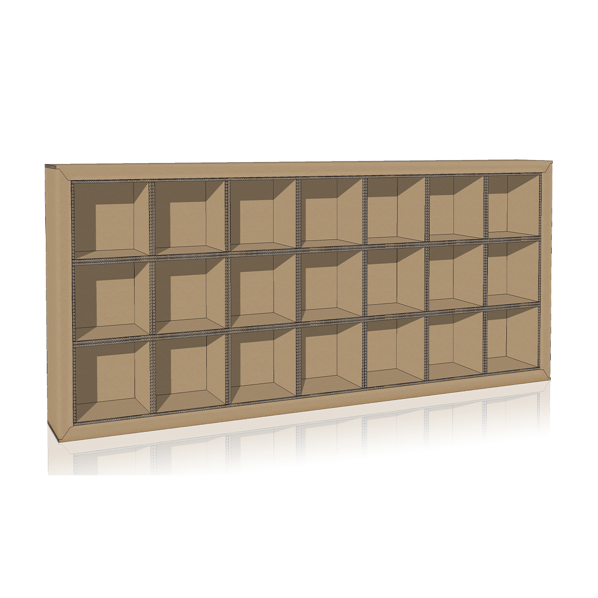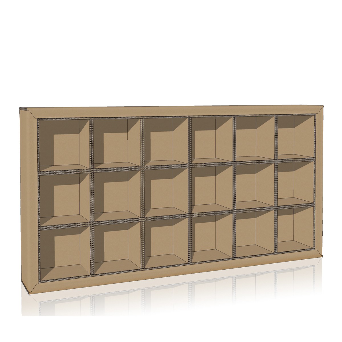 La libreria modulare Flua Plus 30 รจ una soluzione innovativa e altamente personalizzabile per l’arredamento degli spazi. Questa libreria di cartone รจ costituita da 3 file di moduli, ciascuno delle dimensioni di 35×35 cm, che sono sapientemente incastonati all’interno di una cornice di cartone alveolare. Questa progettazione assicura una struttura solida e robusta che puรฒ sopportare pesi notevoli, rendendola ideale per contenere libri e oggetti.