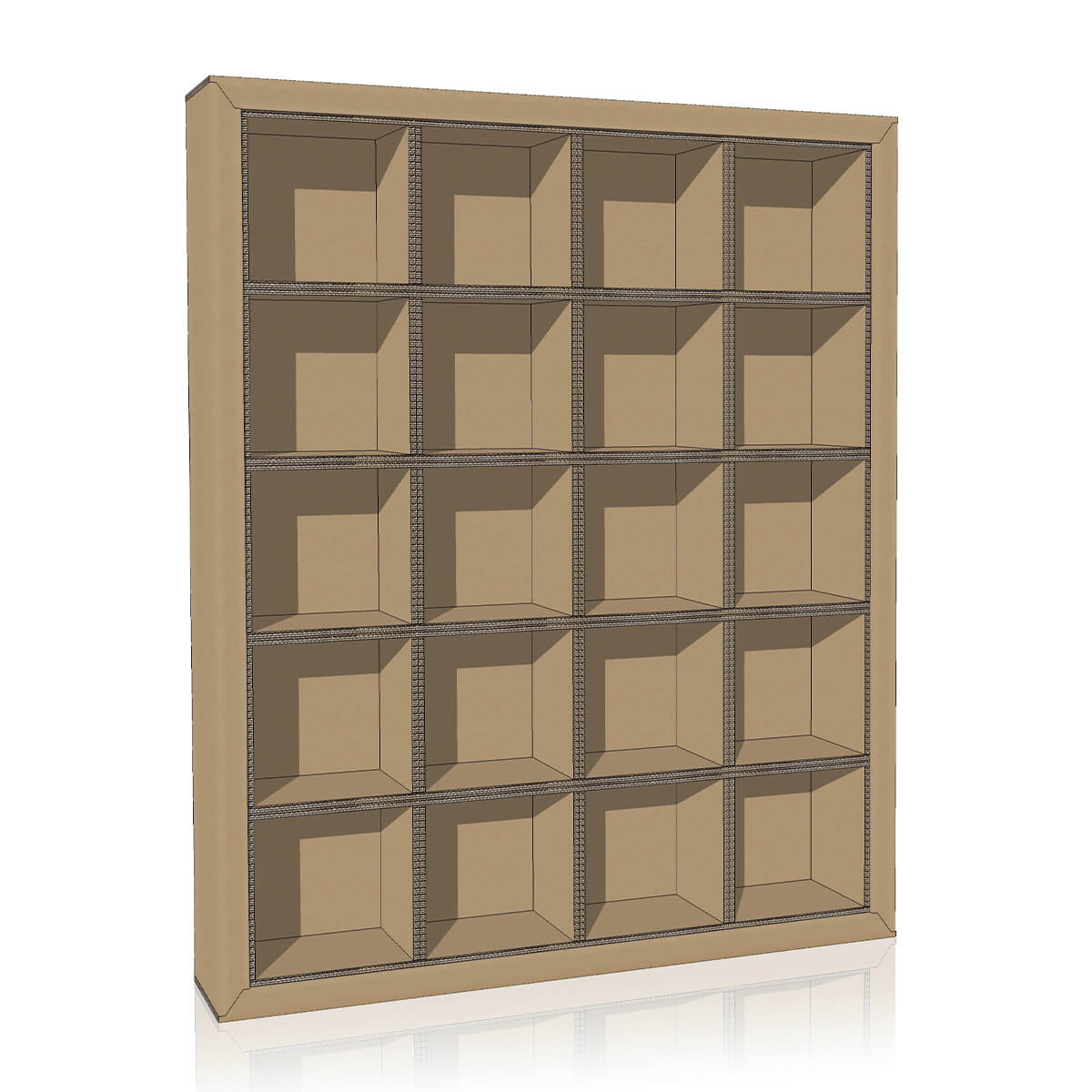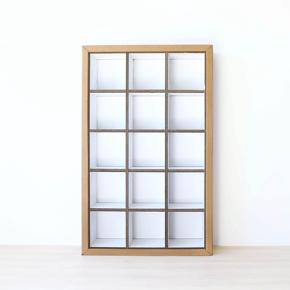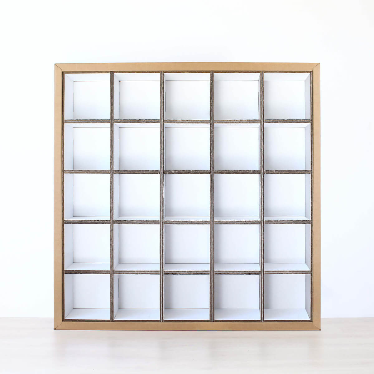 La libreria componibile Flua Plus 50 รจ una soluzione ecologica e versatile per l’organizzazione degli spazi, composta da 5 file di moduli quadrati, ciascuno delle dimensioni di 35×35 cm. Questi moduli sono realizzati interamente con pannelli di cartone alveolare, un materiale ecologico noto per la sua leggerezza e resistenza. La struttura portante e gli incastri dei moduli assicurano uno spessore che garantisce stabilitร e durata nel tempo.