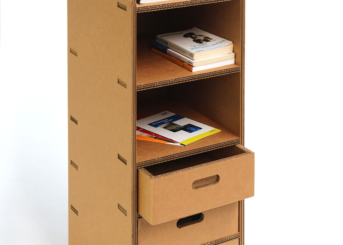 Mazia è una cassettiera di servizio da poter adoperare per molteplici usi sia in ufficio che in casa o punti vendita. L’aspetto green della cassettiera la rende collocabile in qualsiasi arredamento. Mazia è composta da una serie di cassetti collocati in vani per cui  possono essere rimossi completamente e spostati.