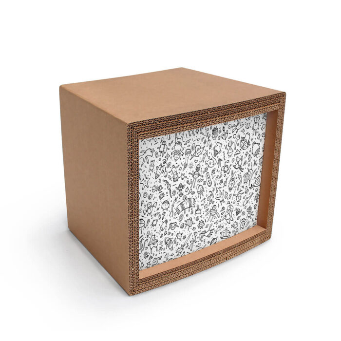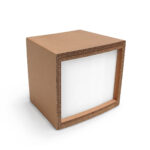 Il vano sotto il piano di seduta puรฒ essere utilizzato per contenere oggetti personali. Abelaccio presenta infine una superficie frontale personalizzabile con stampe ad alta definizione che vanno a creare un efficace contrasto visivo con la struttura portante che mette invece in piena evidenza le trame del cartone e quindi l’ecosostenibilitร di questo sgabello riciclabile al 100%.