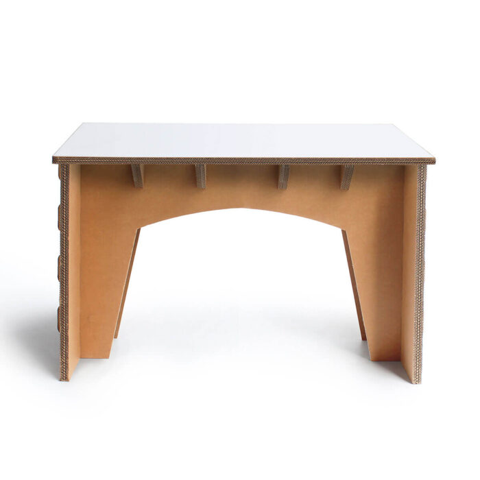 Questa scrivania si rivela, tra la gamma di tavoli in cartone per negozi, una proposta funzionale ed elegante per arredare spazi con destinazione d’uso diversi come negozi e uffici ma anche spazi con maggiore affluenza come fiere od eventi, apportando un tocco di naturalezza e tranquillità. La scelta del materiale sostenibile non solo si traduce in un impatto ambientale ridotto, ma aggiunge anche un elemento distintivo al contesto, conferendo agli ambienti un’atmosfera moderna e accogliente.