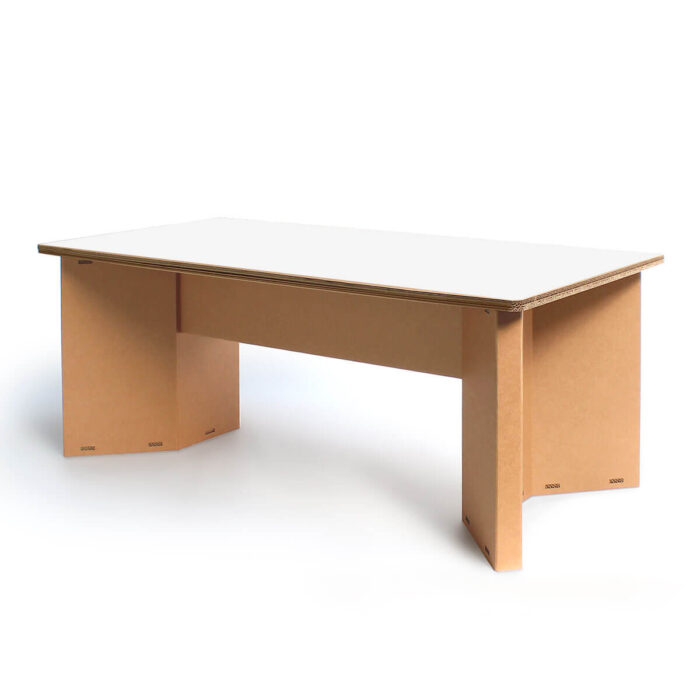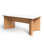 Realizzato in resistente cartone ondulato a doppio strato, Otro 200 C è facile da montare grazie a sistemi ad incastro intuitivi e leggero da spostare così da poterlo posizionare come meglio si vuole. Le sue dimensioni di 200 cm di lunghezza, 10 cm di larghezza e 75 cm di altezza lo rendono adatto a varie configurazioni di spazio. Disponibile nella colorazione di base avana che richiama un ambiente dallo stile molto naturale, il tavolo può essere personalizzato con stampe atossiche del proprio marchio, aggiungendo così un tocco distintivo.