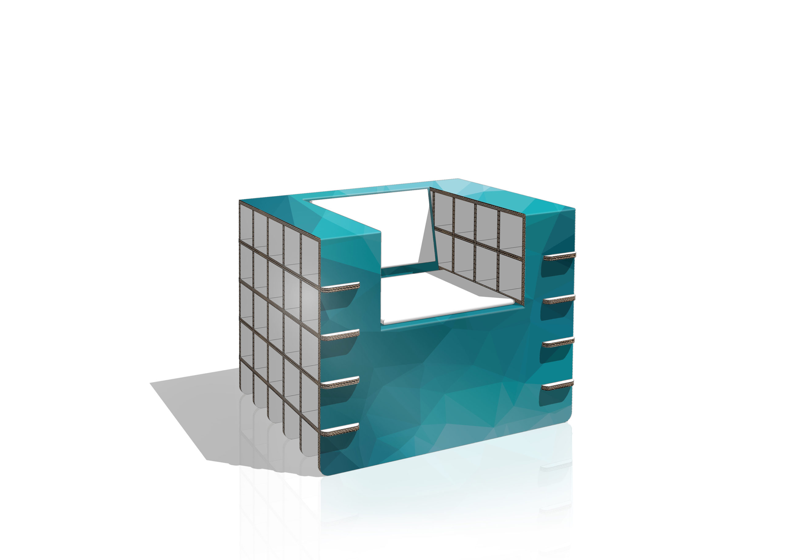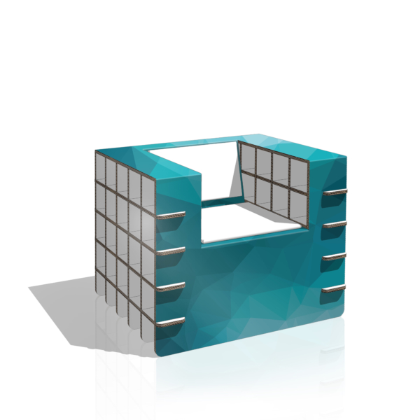 Come tutti i prodotti della sua linea, la poltrona in cartone Golliaz ha origine da una forma semplice e perfetta, il cubo. Ed รจ proprio dalla lampante struttura geometrica che questa seduta ecologica trae forza, coniugando la leggerezza del materiale con una grande personalitร che la fa spiccare negli ambienti in cui viene posizionata. Questa poltrona di cartone รจ incredibilmente solida e stabile, una soluzione d’arredo ideale per chi voglia garantire il massimo del relax in un salottino o in un area break. La poltroncina, proposta con il classico color avana o bianca, non passa di certo inosservata e, per esigenze di comunicazione, puรฒ anche essere plastificata, oย personalizzata con stampe e grafiche su tutta la superficie, divenendo uno strumento fondamentale per campagne di comunicazione e branding, specialmente in contesti come fiere, dirette social, o eventi. La seduta e lo schienale sono leggermente inclinati, i braccioli sono ampi e accomodanti ed รจ anche possibile ricoprire la seduta con un cuscino in cotone beige 100%: grazie a tutte queste caratteristiche la poltrona in cartone Golliaz รจ una soluzione che ti garantisce comfort, sostenibilitร e design innovativo.